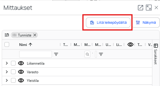 Liitä mittauset toiseen pdf:ään valitsemalla Liitä leikepöydältä