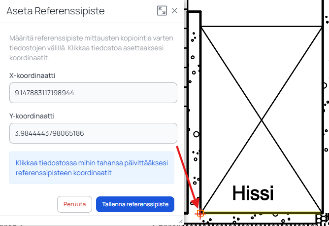 Sen jälkee avautuvassa ikkunassa osoitat kuvasta hyvä referenssipisteen esim. hissikuilu.