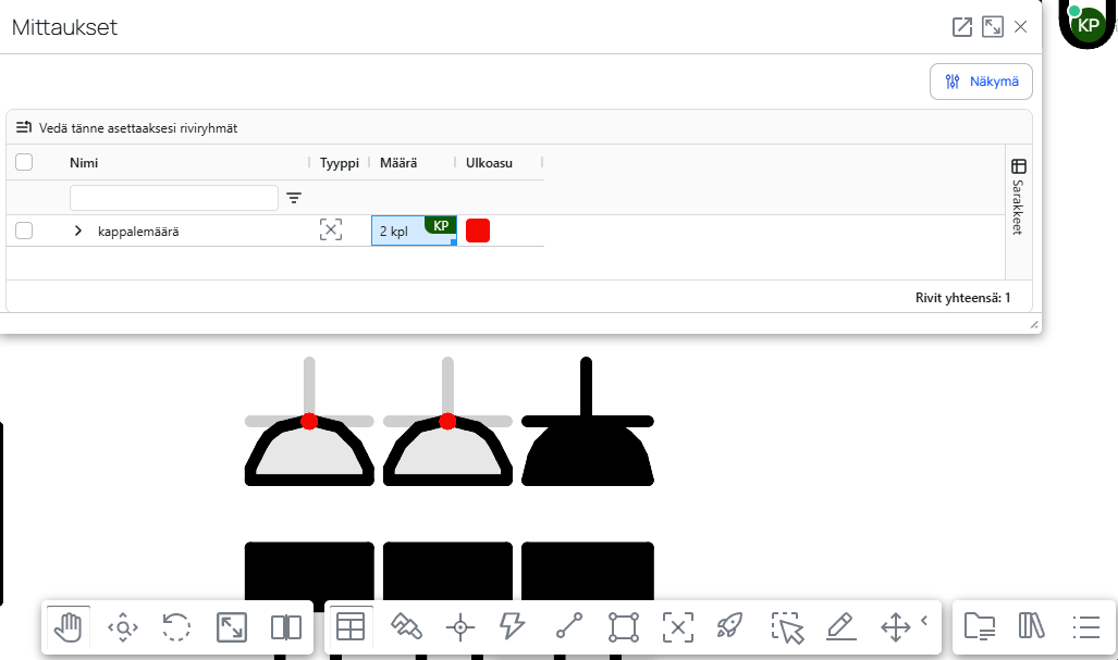 - Uusi Mittausten ominaisuudet taulukko ja toiminnot