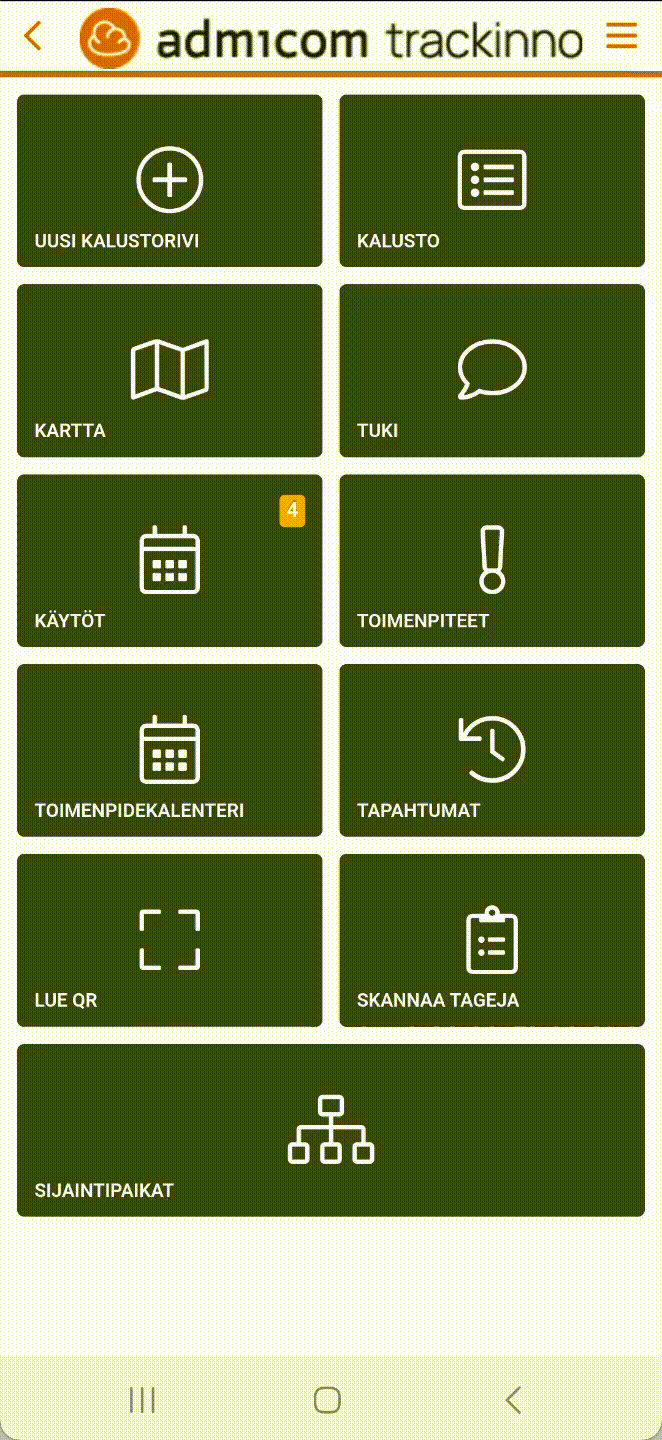 - Avaa Trackinno Mobile ja siirry Sijaintipaikat-näkymään.