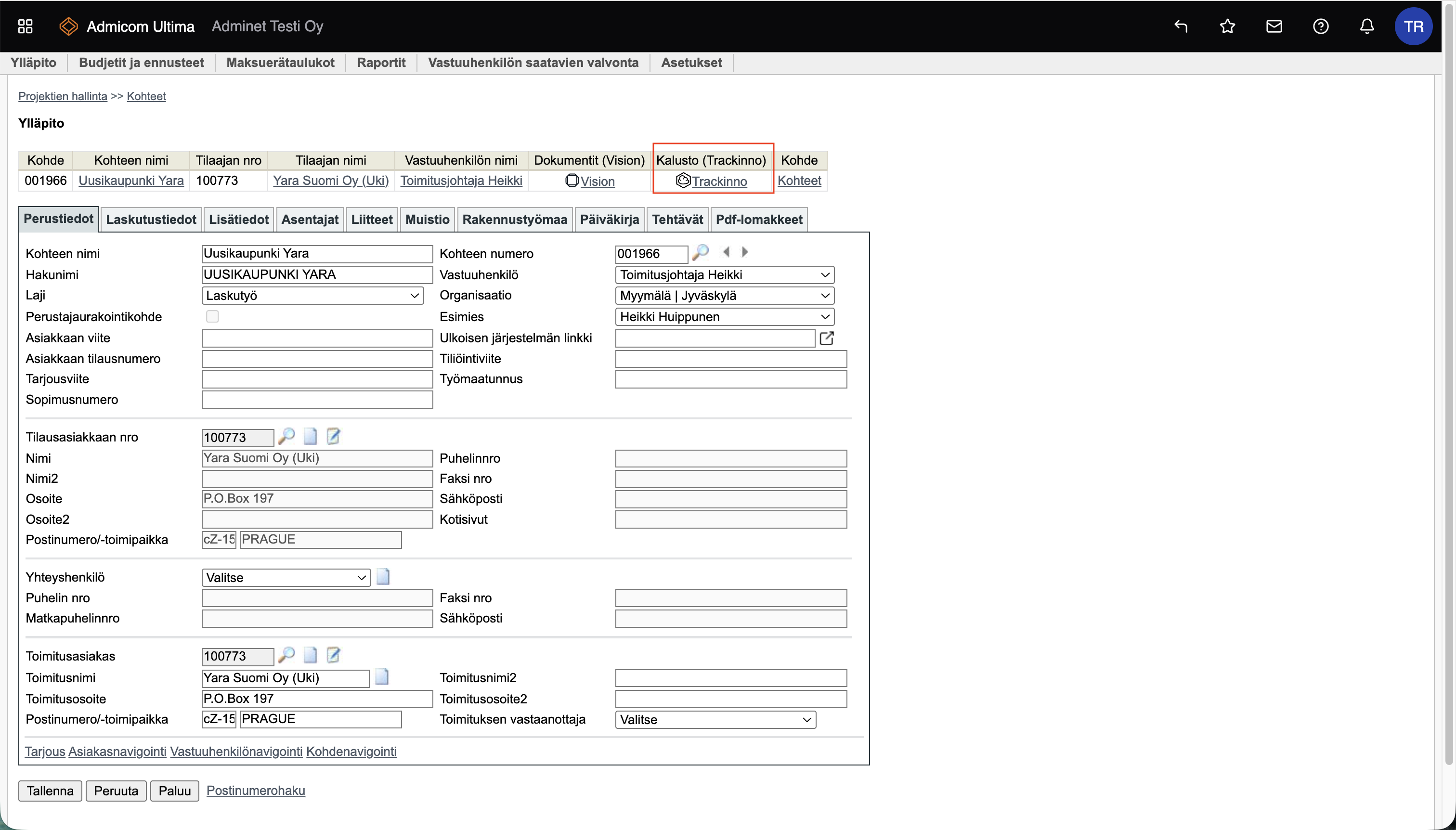 - Sinulla on oikeudet työtilausten luontiin, aikataulutukseen ja synkronointiin Trackinnossa sekä laskutukseen Ultimassa.