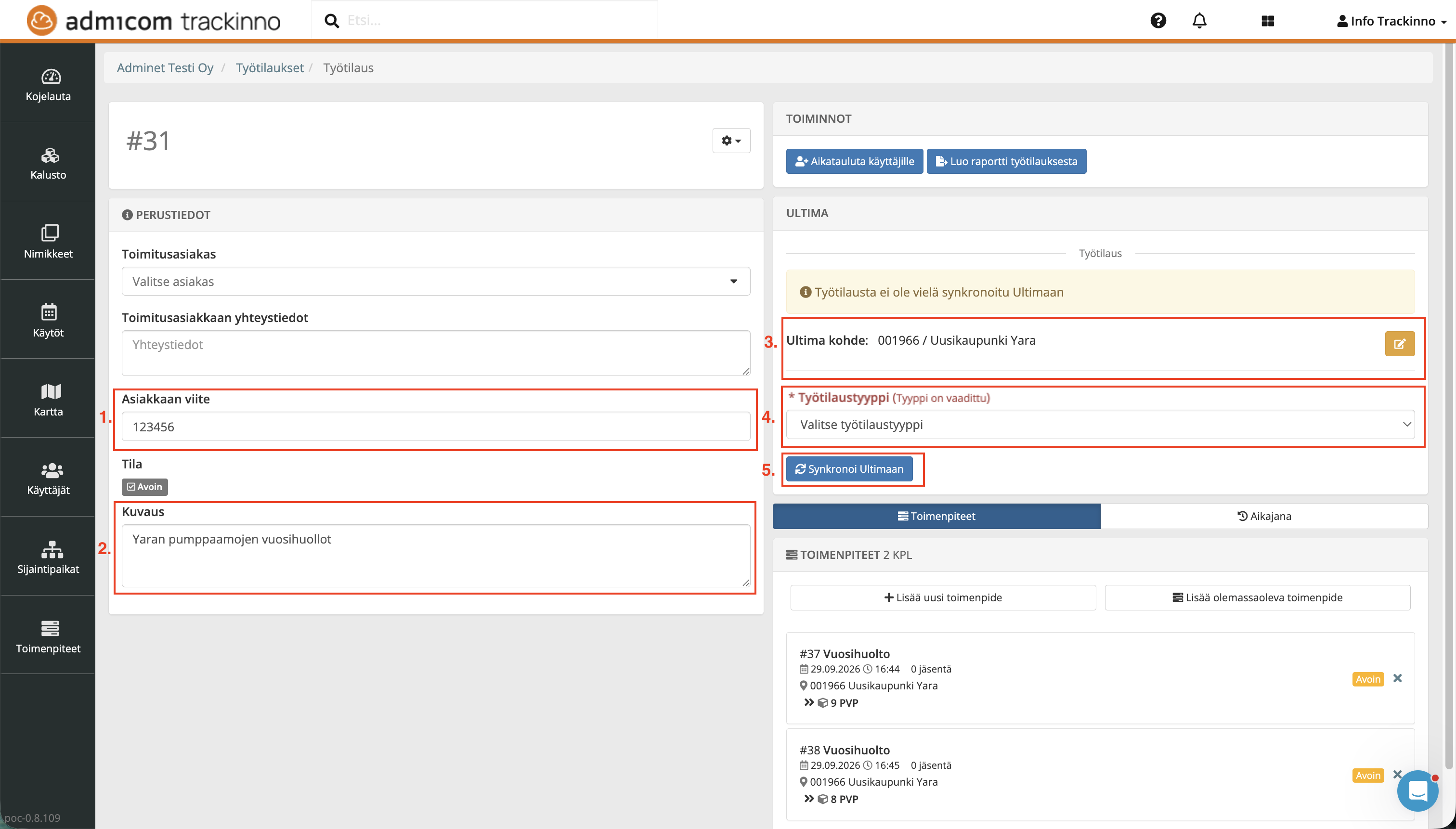 - 5) TRACKINNO: Varaosasuoritteiden synkronointi Ultimaan (Työnjohto)